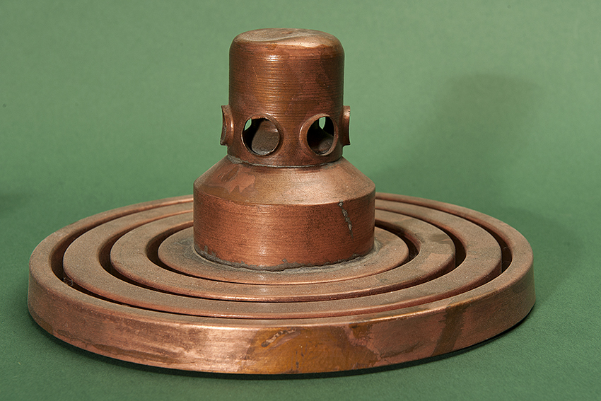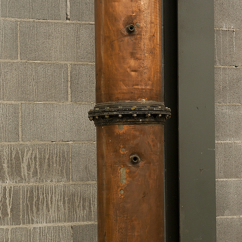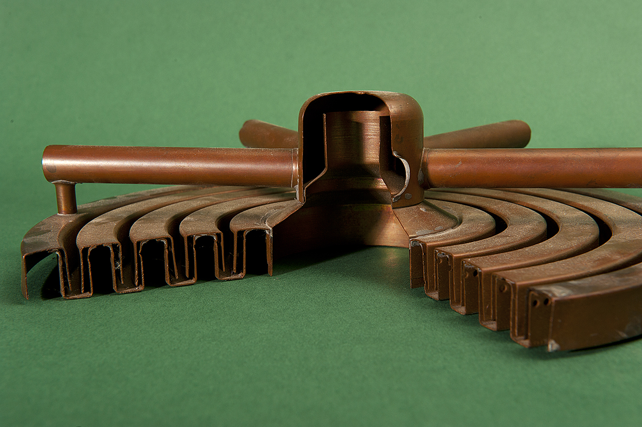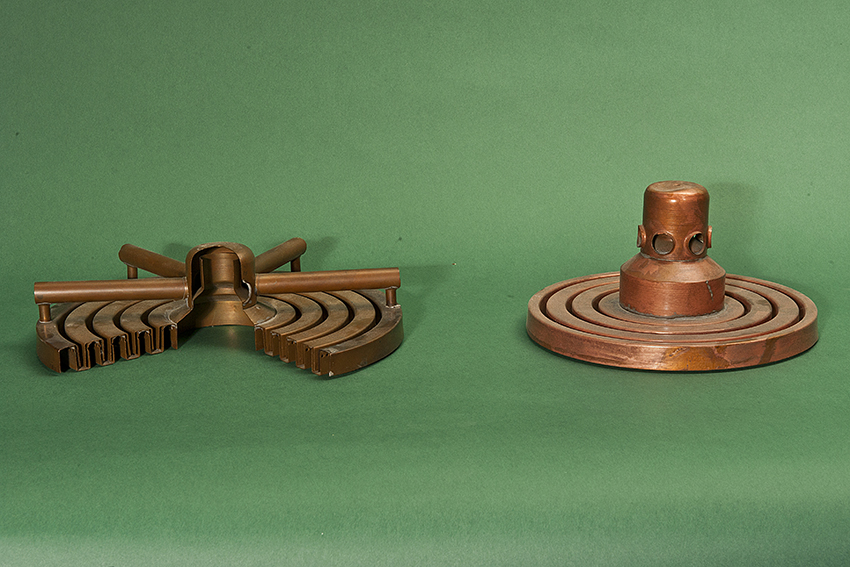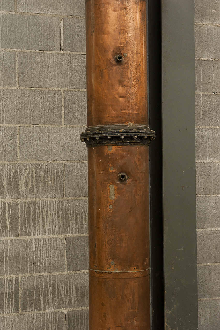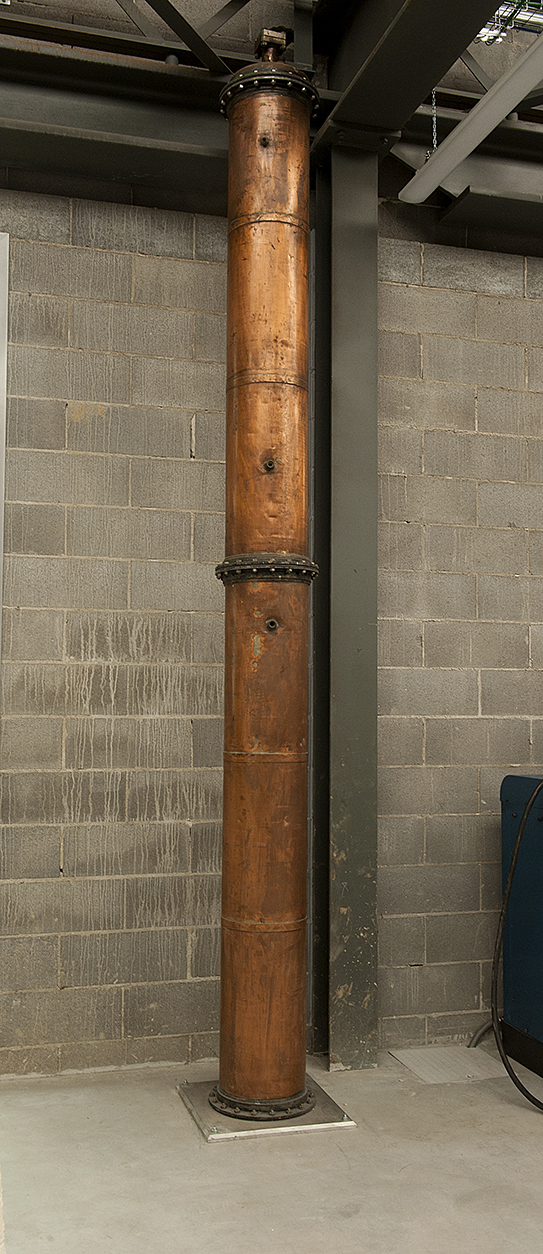 All’interno sono installati i piatti di distillazione anch’essi in rame.